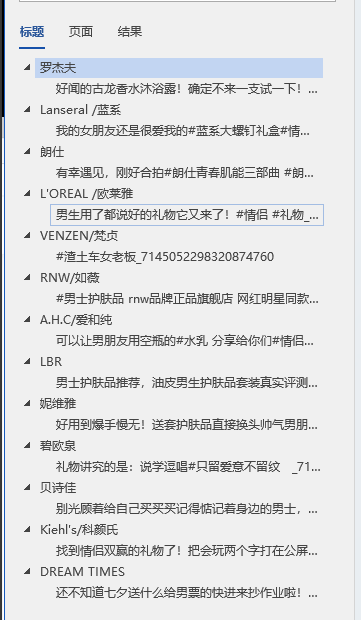 接着优化,将不同列名输入进来,比如昵称,视频地址等1