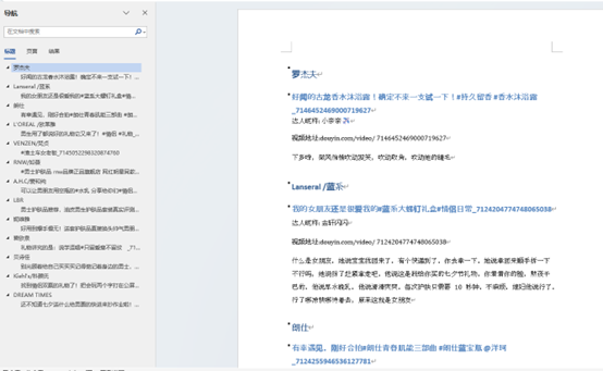 document.add_paragraph(f'视频地址:douyin.com/video/ {merge.iloc[i]["AwemeId"]}') #这里字段名要用双引号括起来,不然py会误判结束位置